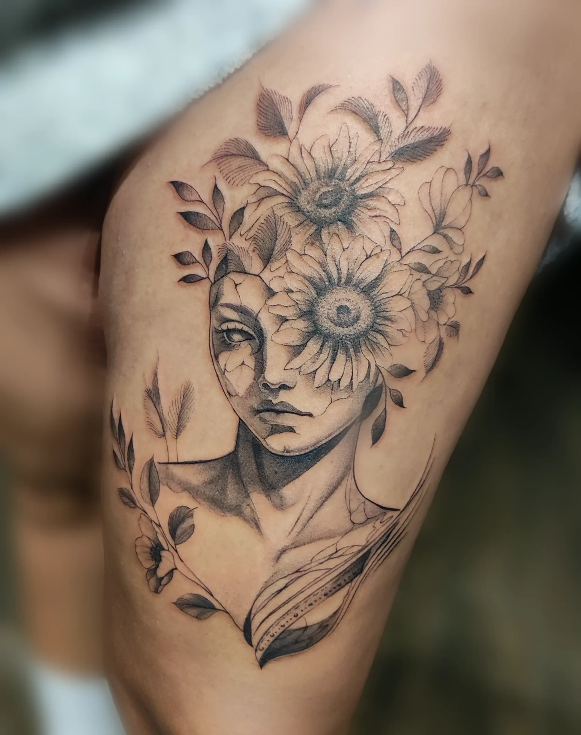 Na co dzień łączymy rzemiosło i wrażliwość: precyzyjną kreskę z dbałością o detal, estetykę z praktyką gojenia i czytelnością po czasie. Pracujemy w wielu stylach — od fine line i mikrorealizmu, przez realizm czarno-biały i kolor, po anime/manga oraz cover-up. Każdy z tych języków ma inne środki wyrazu: czasem wystarczy szept cienkiej linii, innym razem potrzebny jest światłocień, kolor lub nowa kompozycja, by odzyskać miejsce na skórze.